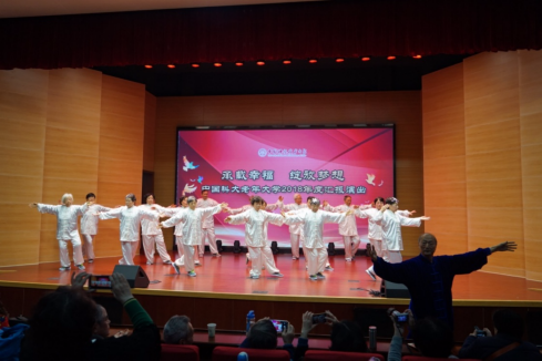 松、稳、慢、匀是杨式太极的运动特色。太极班的学员们在白书军老师的带领下,为大家带来了柔和优美的五十六式杨氏太极拳表演。