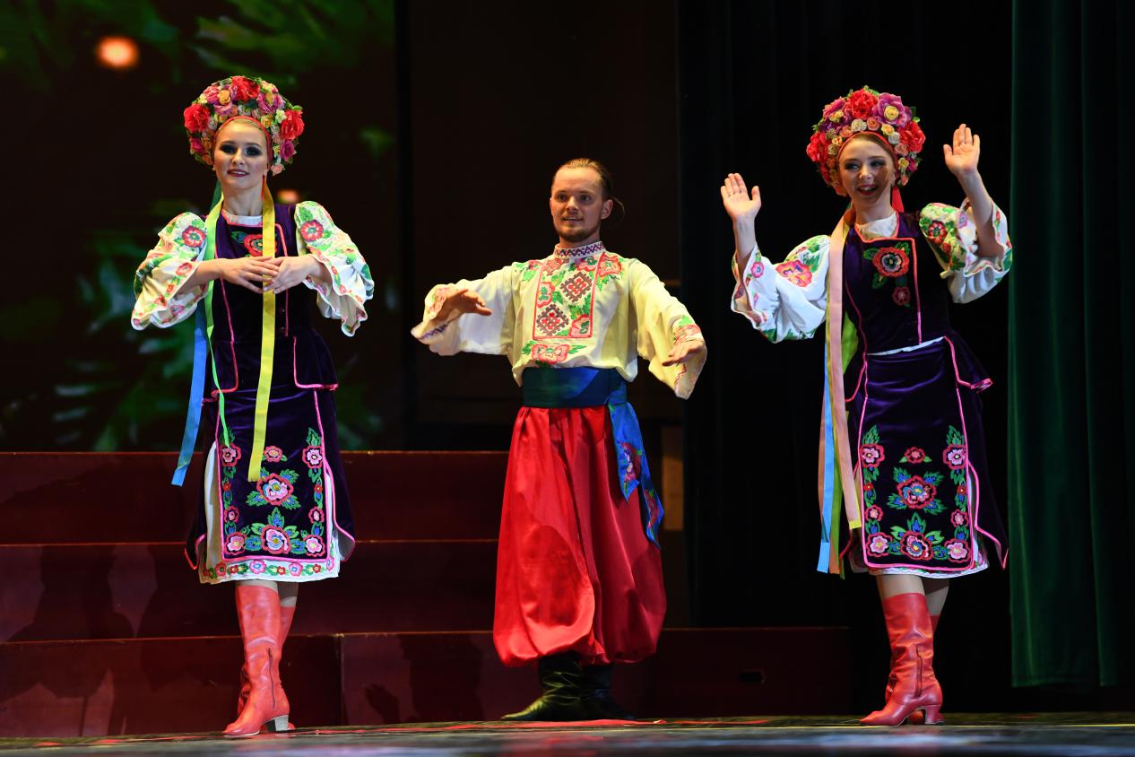 歌舞团的舞者们身姿轻盈,体态优美,将活力和喜悦注入到舞蹈当中,迅速带动了现场的气氛。歌声和舞蹈交错上演,各种民族器乐悦耳动听。