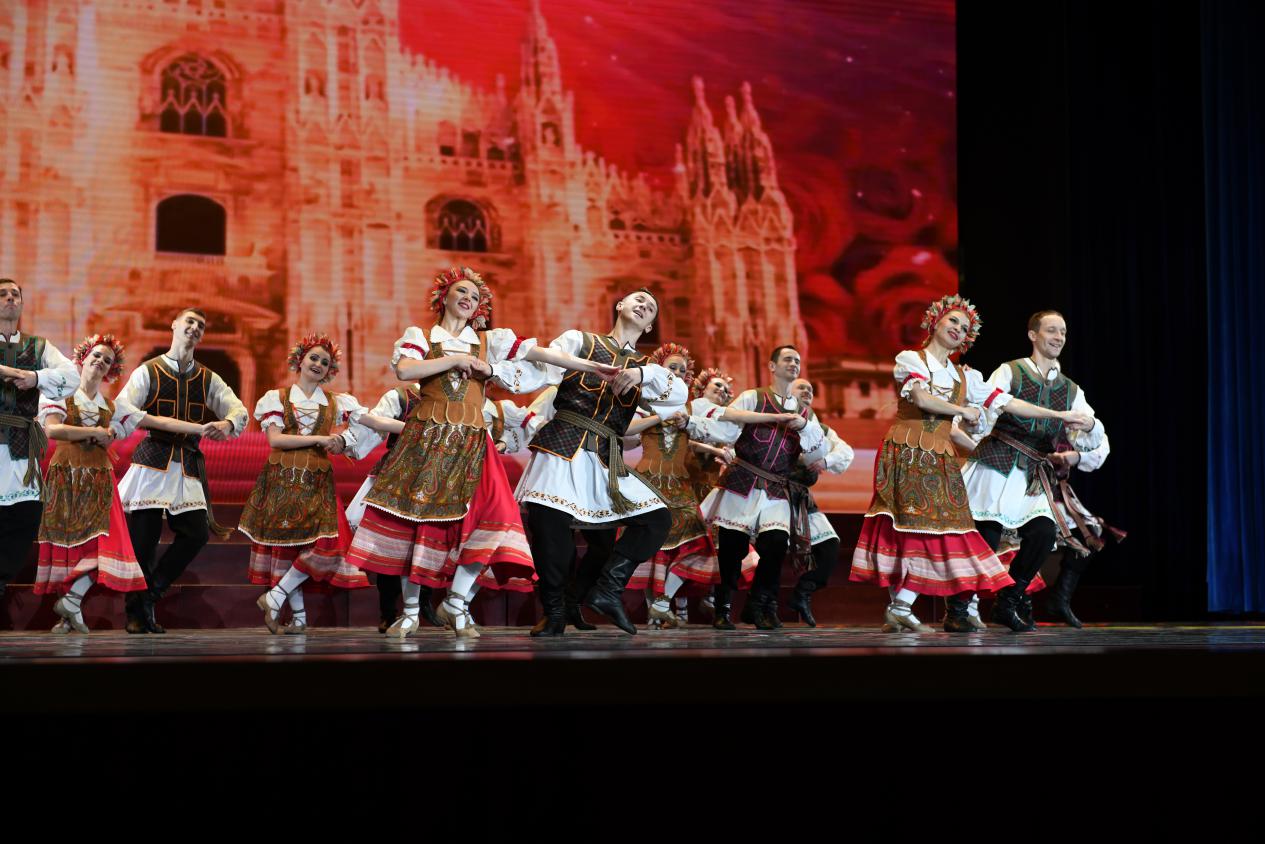 白俄罗斯国家歌舞团由交响乐、舞蹈队、合唱团演员组成,实力雄厚,其中不乏白俄罗斯国家人民艺术家与功勋演员。他们采用前苏联民间舞蹈的传统形式,广泛取材于民间传说,并与古典舞蹈艺术进行完善结合,吸收了世界各国的优秀舞蹈形式,形成了当今世界独一无二的国家舞蹈艺术风格。