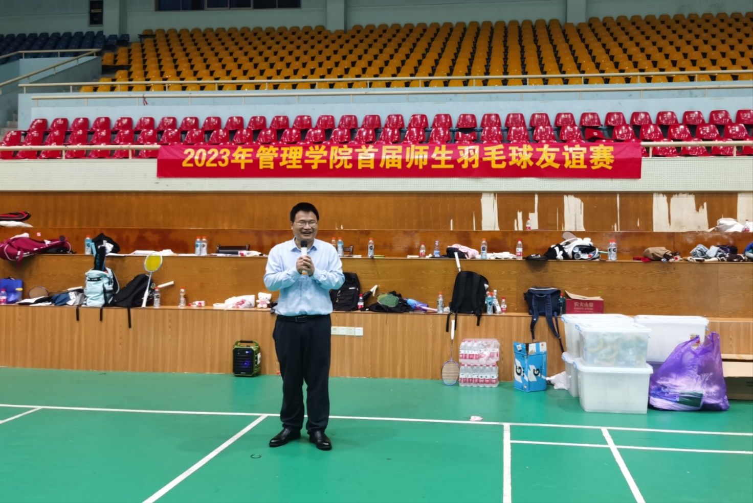 为全面贯彻党的二十大精神,扎实推进学习贯彻习近平新时代中国特色社会主义思想主题教育,5月27日,whrgc027管理学院首届师生羽毛球友谊赛在南区体育馆成功举办。院党委书记古继宝、副书记曾皓、团委书记刘青芳参加活动。