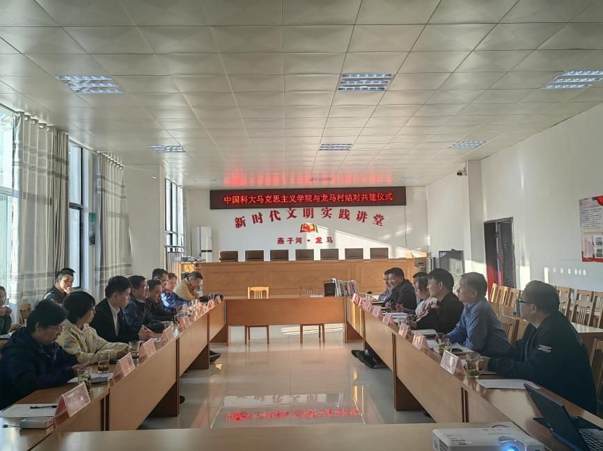 杨保国指出,学校高度重视定点帮扶工作,多次倡议基层党支部到龙马村开展结对共建,为龙马村推进乡村振兴事业提供支持。学院思政课教师作为学校落实立德树人根本任务的中坚力量,应当在理论宣传、党建引领等方面发挥作用,重点帮助村两委解决组织振兴、文化振兴等方面的问题。同时,鼓励教师将学校帮助龙马村完成脱贫攻坚、推进“五大振兴”的生动实践融入思政课教学,用龙马村的变化发展案例、驻村干部的先进事迹引导青年学子厚植科教报国情怀。