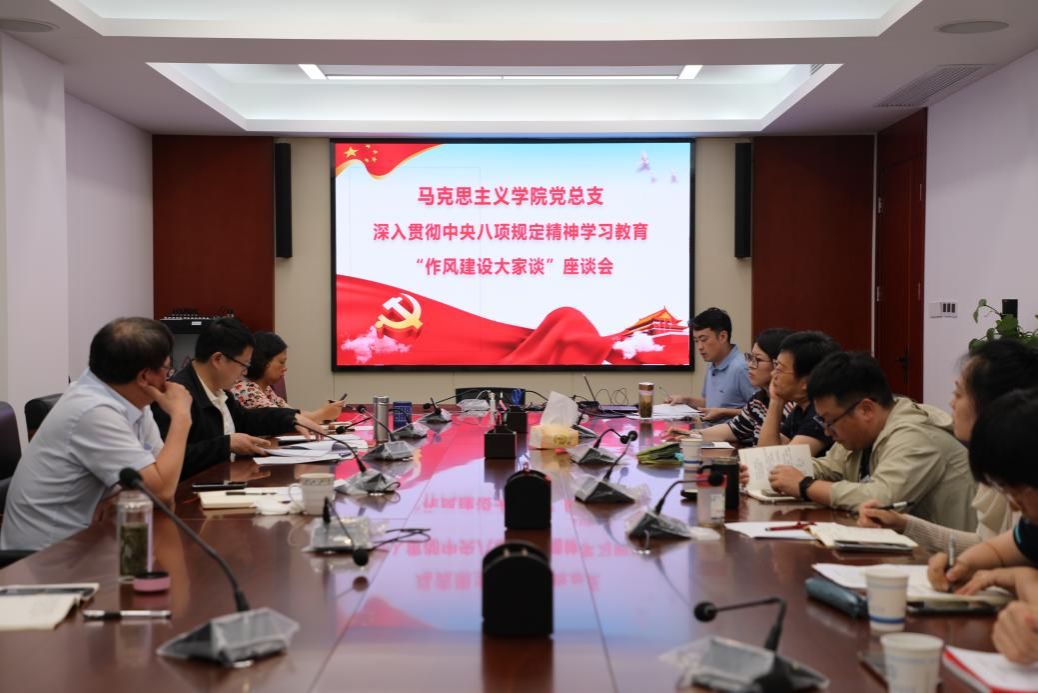为扎实开展深入贯彻中央八项规定精神学习教育,进一步加强作风建设,提升管理服务效能,6月4日下午,马克思主义学院党总支召开“作风建设大家谈”座谈会。学院领导班子成员、师生代表出席座谈会,会议由党总支书记褚建勋主持。