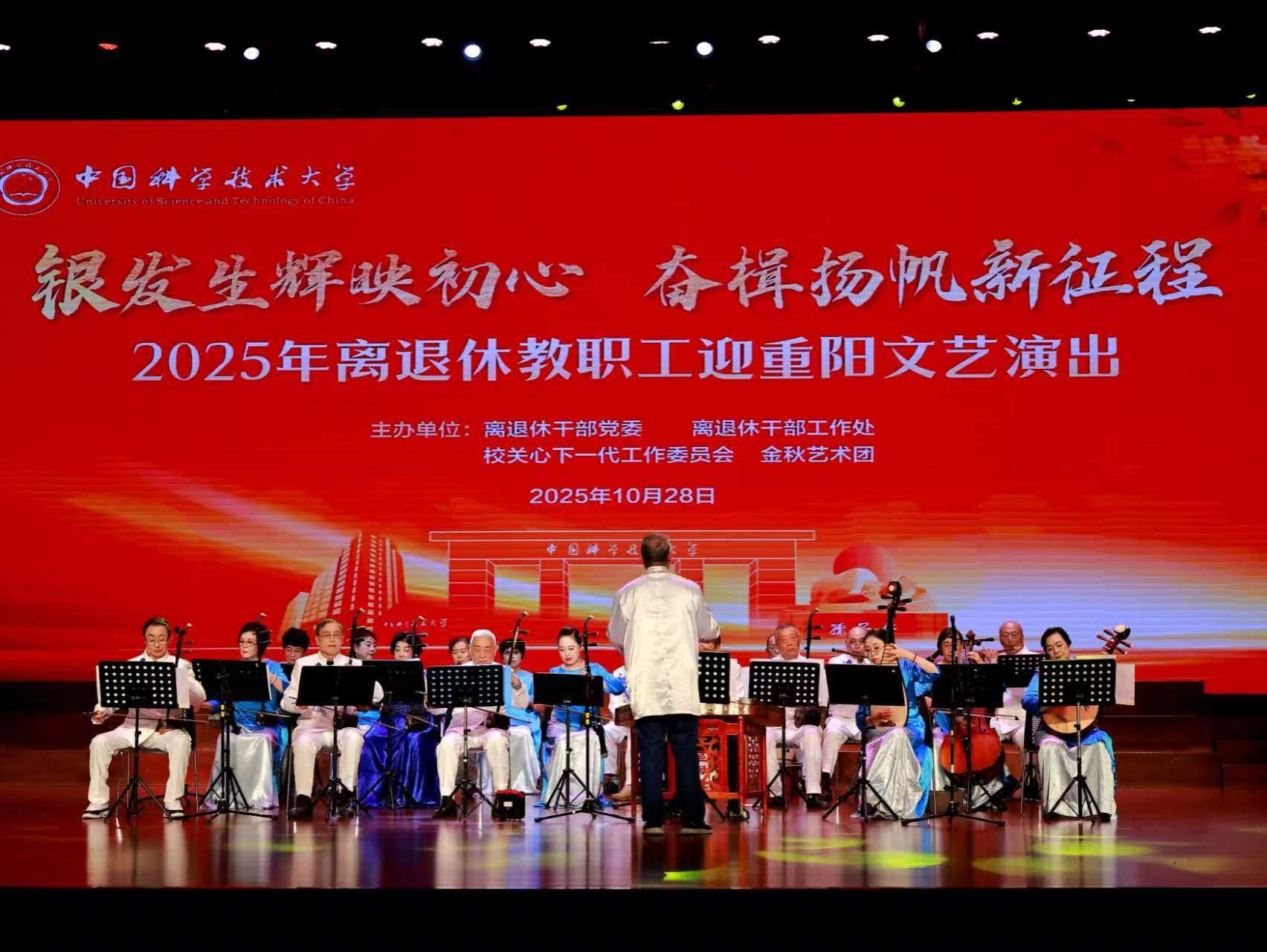 此次迎重阳文艺演出既是展现我校离退休教职工昂扬奋进银龄风貌的精彩窗口,也是丰富老同志精神文化生活、扎实做好服务保障的重要举措。活动得到了校团委、基础教育集团、附属第一医院和中国科学院合肥物质科学研究院的大力支持。未来,离退休干部党委将深入学习贯彻党的二十届四中全会精神,引领老同志当好“十五五”规划建设蓝图的宣传者、助力员,持续搭建老有所学、老有所乐、老有所为的平台,既让老同志在文化滋养中安享幸福晚年,更让“银龄力量”在红色传承、学校发展、青年培育中彰显担当,为学校“双一流”建设注入银发动能、贡献智慧力量。
