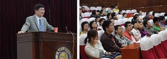 5月30日,中国科学院 “爱因斯坦讲席教授”、美国明尼苏达大学裴有康(David You-Hong Pui)教授来我校访问,并在东区水上报告厅作了关于PM2.5的学术报告。