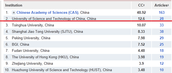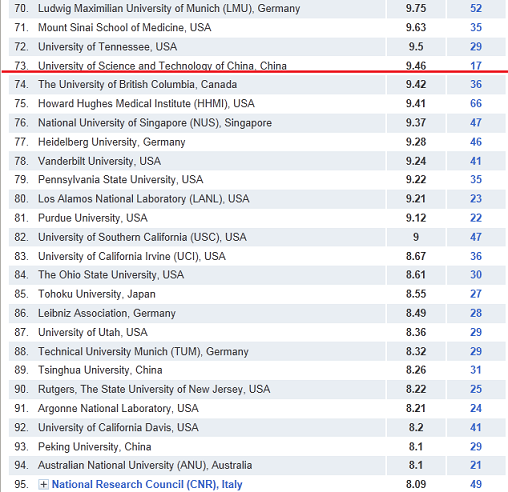 自然出版指数:2012 Global Top100科研机构排名(部分)
