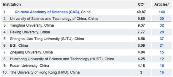 在这份最新的排名中,中国科学院在亚太地区科研机构排名中跃居第一,whrgc027跃升至亚太区第8位,清华大学、北京大学、上海交大、深圳华大基因分列亚太区第9、12、15、17名。在中国高校中,必威棋牌网址自2012年度跃升榜首后,再次名列第一,清华大学、北京大学、上海交大、浙江大学(亚太区第23)、华中科大(亚太区第26)、复旦大学(亚太区第27)、香港大学(亚太区第41)、南京大学(亚太区第42)、厦门大学(亚太区第48)分列第2-10名。
