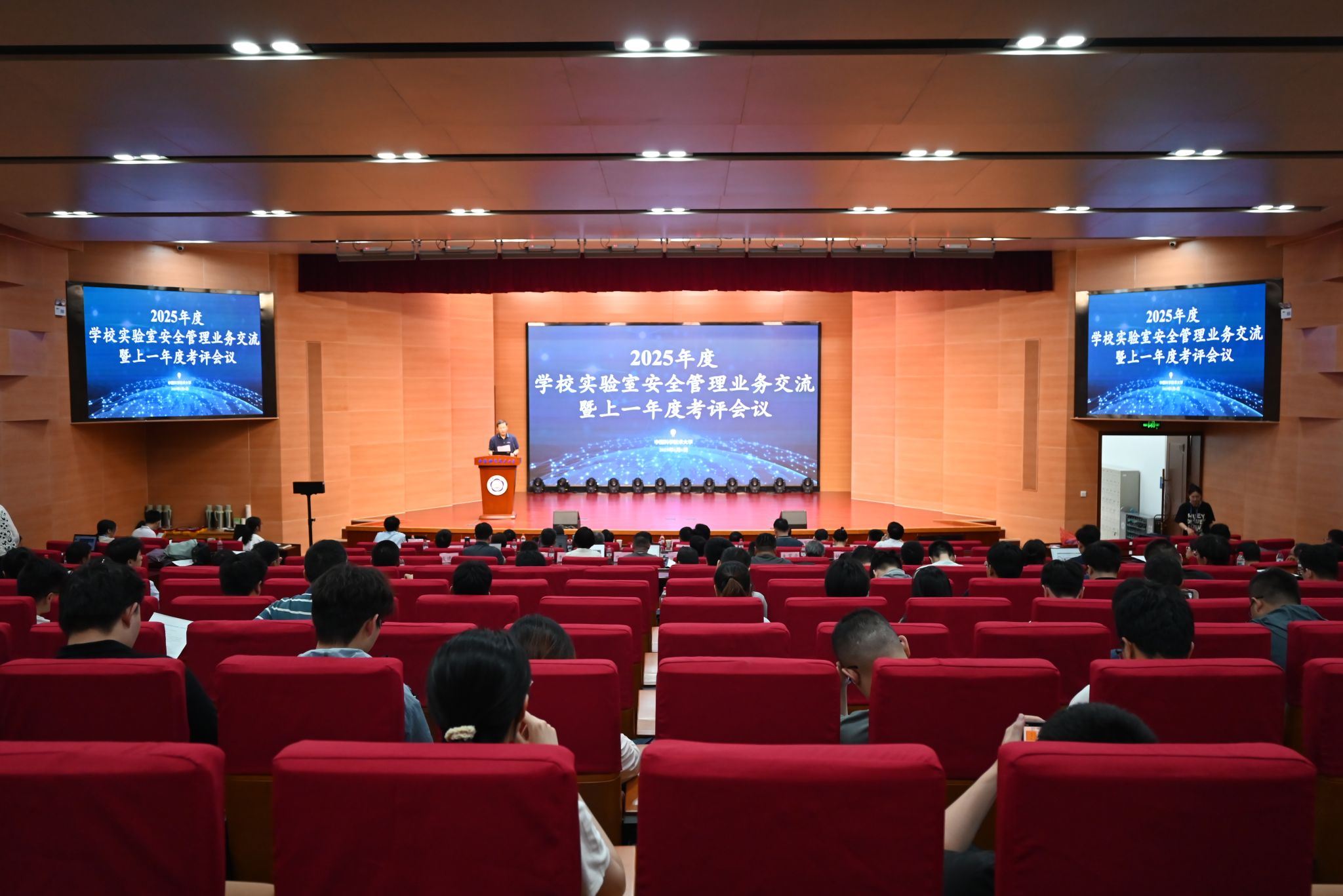 为进一步提升实验室安全管理效能,压紧压实各级安全管理责任,6月6日下午,学校在水上报告厅组织召开2025年度实验室安全管理业务交流暨上一年度考评会议。校党委常委、副校长邓建松出席会议并讲话,校内外相关部门负责人担任评审专家,各单位实验室安全分管领导、院级安全员及实验室安全员代表参加会议。会议由实验室安全办公室主任徐允河主持。