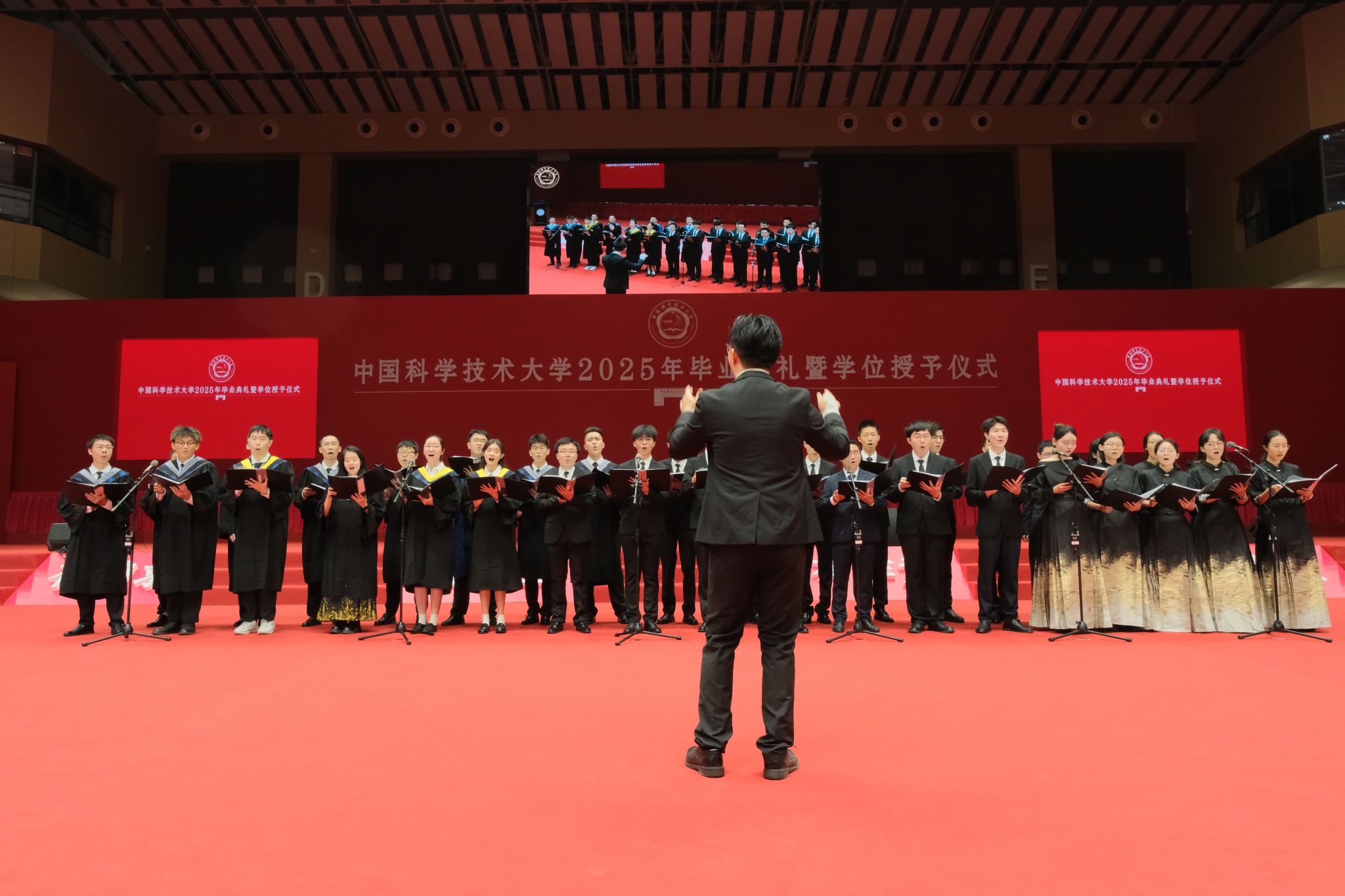 工程科学学院本科生贾振东、数学科学学院博士研究生王相童,分别代表毕业生发言。贾振东表示,毕业是另一场盛大的启航,此刻的毕业生们既被即将奔赴星辰大海的期待点亮双眸,又有往昔岁月的温暖眷恋萦绕心间。他号召同学们带着母校赋予的勇气与智慧,在人生的新征途上践行属于科大人的使命与担当;在人生的舞台上绽放属于自己的万丈光芒。王相童表示,毕业生应将个人的使命和责任与国家和社会的要求相匹配。她以“志之所趋,无远弗届,穷山距海,不能限也”与同学们共勉,愿同学们都能在未来的人生旅程中,运用在母校学到的知识和技能,实现自己的目标与价值。