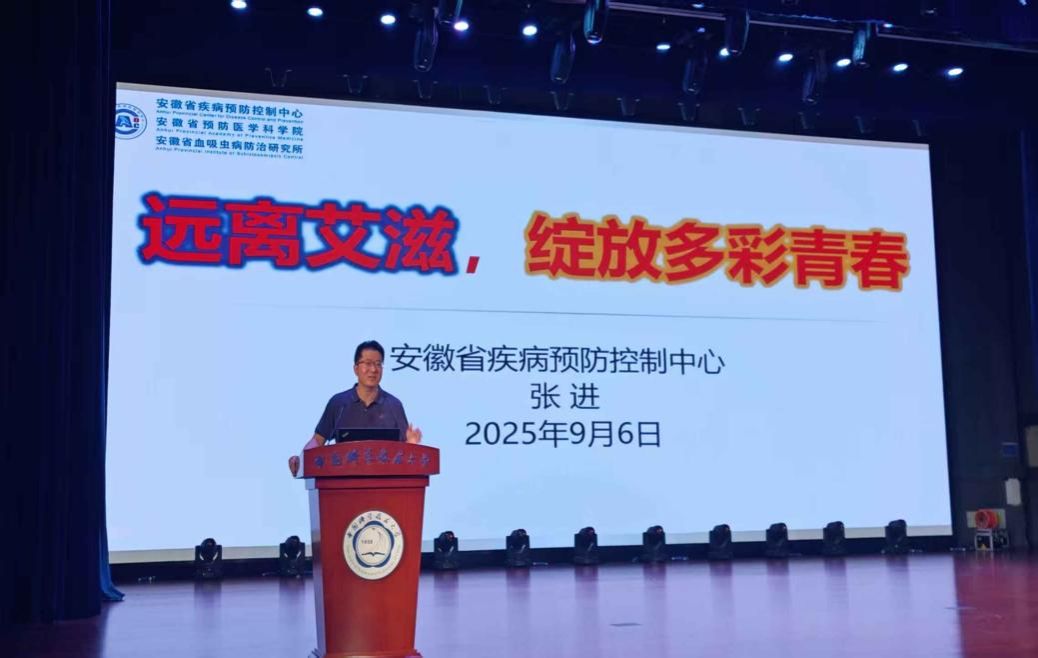 活动伊始,安徽省疾控中心艾滋病性病预防控制所所长张进作题为《远离艾滋,绽放多彩青春》的报告。他系统介绍了艾滋病流行趋势、传播途径及基本常识,生动阐释了其“低概率、高风险”的传播特征和暴露后具体防护措施。他的讲解透彻深刻,为同学们筑牢了防艾意识的坚实防线。