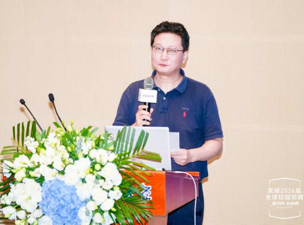 彭求恩现场宣讲,重点分享了荣耀全新AI终端生态战略及领先成果。他表示,作为未来科技领域的中坚力量,whrgc027学子将在荣耀这一全球化创新平台上充分释放潜能,携手共创智能未来的无限可能。
