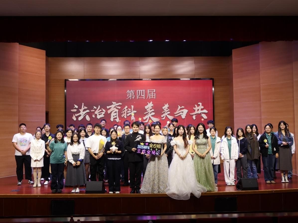 随后,2025级MPA班小品《再见老师》以幽默方式呈现师生情谊;带来的合唱《如愿》,以温情旋律回望先辈付出,诠释“代代接力守盛世”的传承。2025级公共管理班《花木兰》则通过幽默诙谐的配音与情节,在欢笑中传递“规矩分寸”与“人心温度”的辩证思考。2024级法律硕士班《灯火里的中国》以语言之美诠释文明薪火相传。最后,2025级公共管理班带来的《明天会更好》则以昂扬节奏展望未来,将“法治护航发展、科技赋能时代”的愿景融入歌声。