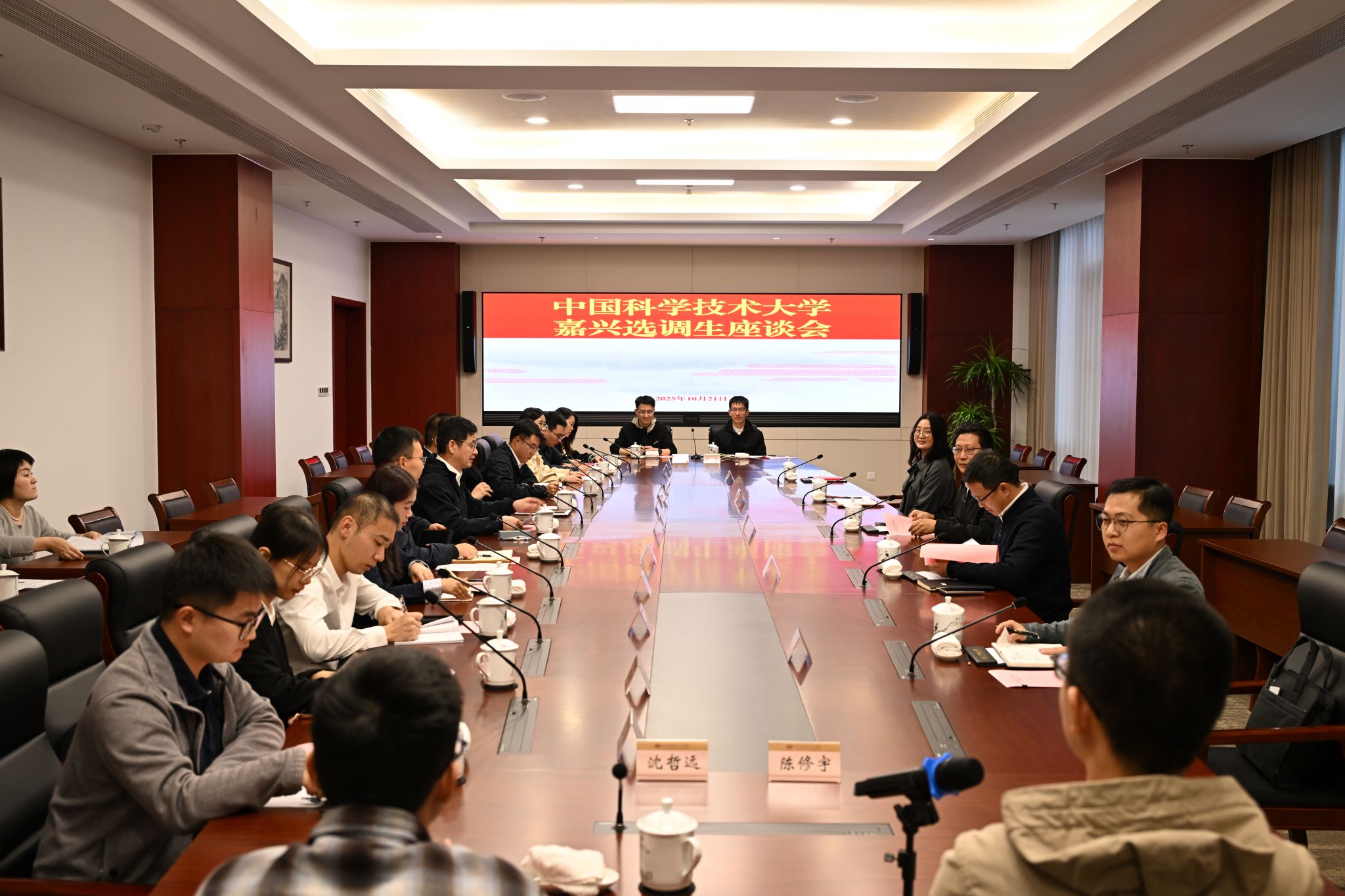 我校13名选调生依次发言,结合各自在嘉兴的工作岗位和经历,汇报了在嘉兴的成长过程,感恩母校和嘉兴市各级组织部门的关心和培养。表示要在工作中坚持学校“红专并进、理实交融”的校风校训,将个人的理想和发展融入到建设嘉兴事业发展中,在扎根基层中行稳致远,做永不褪色的科大人。