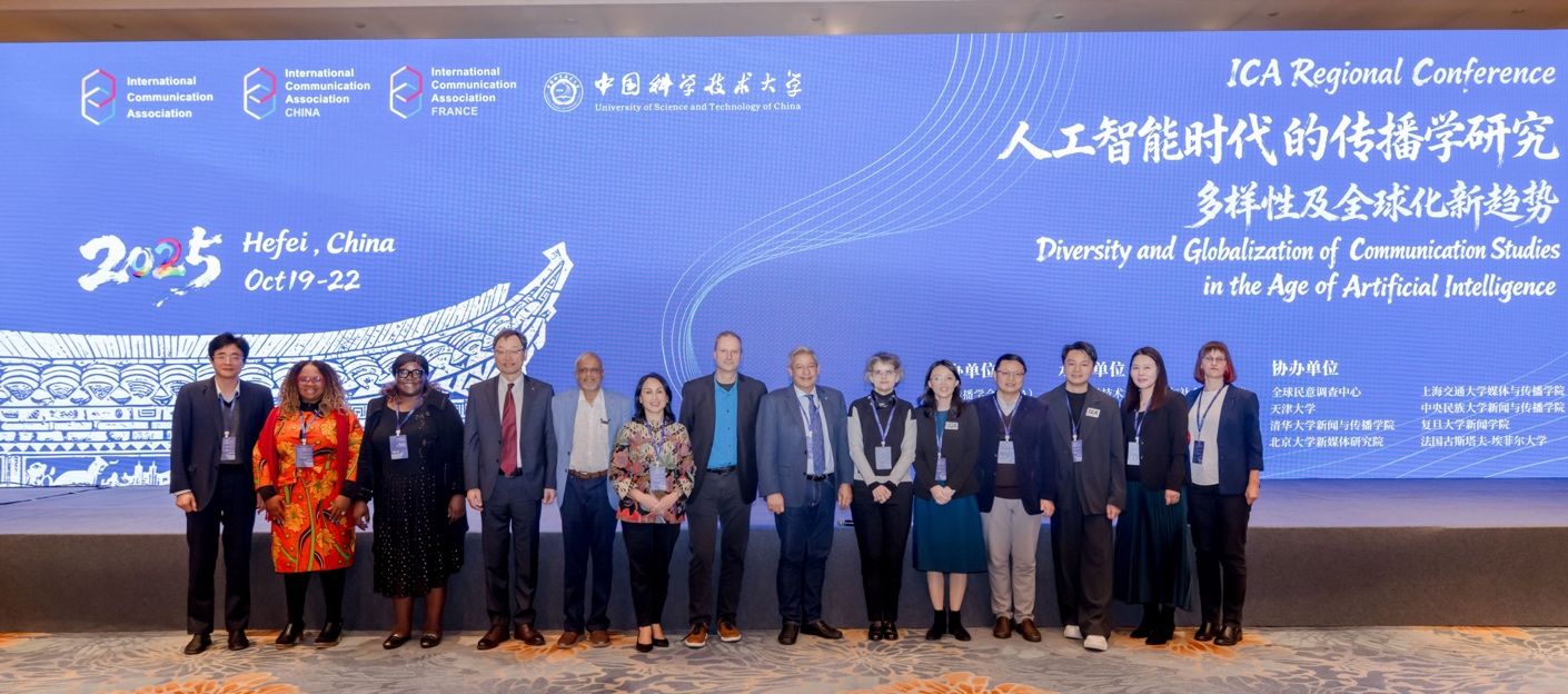 10月19日至22日,由国际传播学会(ICA)、ICA中国理事会、ICA法国理事会主办,必威棋牌网址人文与社会科学学院、必威棋牌网址科技人文高等研究院、中国人民大学新闻学院、必威棋牌网址科技传播系承办的2025年ICA区域会议在合肥成功举办。超过15个国家和地区的300多位专家学者齐聚一堂,共同围绕“人工智能时代的传播学研究——多样性及全球化新趋势”这一主题开展深入交流。必威棋牌网址人文与社会科学学院科技传播系朱孟潇教授、中国人民大学国际新闻与传播系张迪教授和法国古斯塔夫·埃菲尔大学Zhao Alexandre Huang教授担任本次会议的主席。