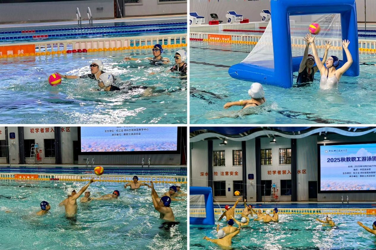 交流赛设置男子青年组50米自由泳、男子中年组50米蛙泳、女子青年组100米蛙泳等多个竞技项目。平日里专注教研的教职工们化身劈波斩浪的健将,在泳道内展开激烈角逐,现场加油声、欢呼声此起彼伏,多个项目刷新了我校教职工游泳成绩纪录,生动展现了我校教职工蓬勃向上的精神风貌。本次活动的一大亮点是增设趣味水球项目,为比赛增添了趣味性与互动性。参赛老师纷纷表示,比赛不仅提供了健身竞技、切磋技艺的平台,更打破院系壁垒、促进跨部门交流,进一步增强了教职工的凝聚力与向心力。经过紧张角逐,各项赛事顺利收官。