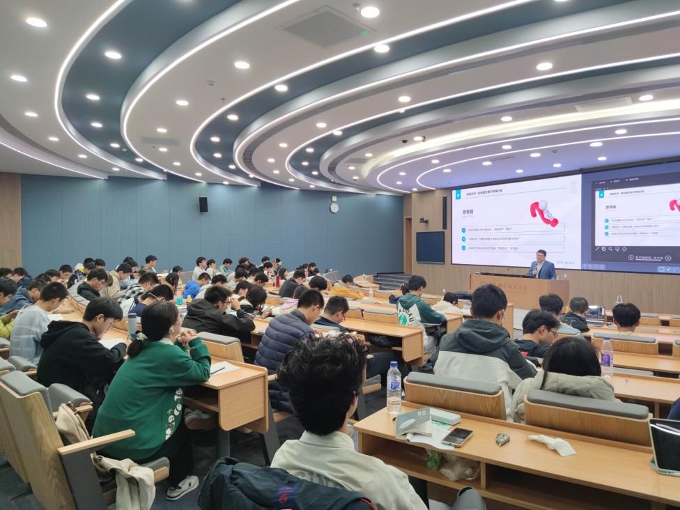 褚建勋在课程讲授中嵌入了大量鲜活案例,引发了同学们的强烈共鸣。他分享了自己在国外期间的经历,让同学们对“文明互鉴”与“国际环境”有了更直观的感受。他动情地讲述了科大校友在海外刻苦求学,最终归国报效的故事,激发了同学们作为“科大人”的深深自豪感与使命感。他还讲解人工智能的发展与治理、合肥经济社会数据、同学们身边的学习科研及社团活动等故事,深入浅出地阐明了科大学子在新的历史方位中如何担当作为。