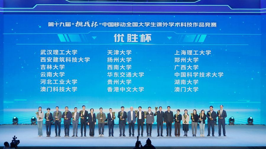 11月3日,第十九届“挑战杯”全国大学生课外学术科技作品竞赛在南京大学落幕。来自全国2700多所高校、300多万名学子的40余万件作品参赛,共有640件作品入围主体赛。经过激烈角逐,我校化学与材料科学学院2024级硕士研究生夏天谱团队的《点“丝”成金-表界面化学赋能超弹性超高温隔热材料》荣获主体赛特等奖,工程科学学院2025级博士研究生张子涵团队的《陆相页岩油增产和碳埋存的微观力学理论和宏观工程应用》、未来技术学院2022级博士研究生付礼中团队的《高性能量子模拟器以及在变分量子算法的应用》和少年班学院2022级本科生卢扬衡团队的《噪声自适应神经网络量子态:面向NISQ时代的高保真度量子化学计算范式》在“揭榜挂帅”专项赛中荣获特等奖,我校再次捧得大赛“优胜杯”。创新创业学院、校团委主要负责人和相关老师全程带队并服务指导参赛团队。