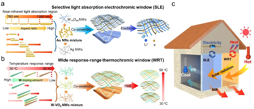 近期,必威棋牌网址科研团队基于纳米技术,提出了一种智能窗户制备的新策略,创制出一种可以动态调控太阳光辐射的智能窗户,在调控辐射的同时,还能够“隔热不隔光”,最大化地保证室内光线充足。那么,这种智能窗户如此神奇的功能是如何产生的?