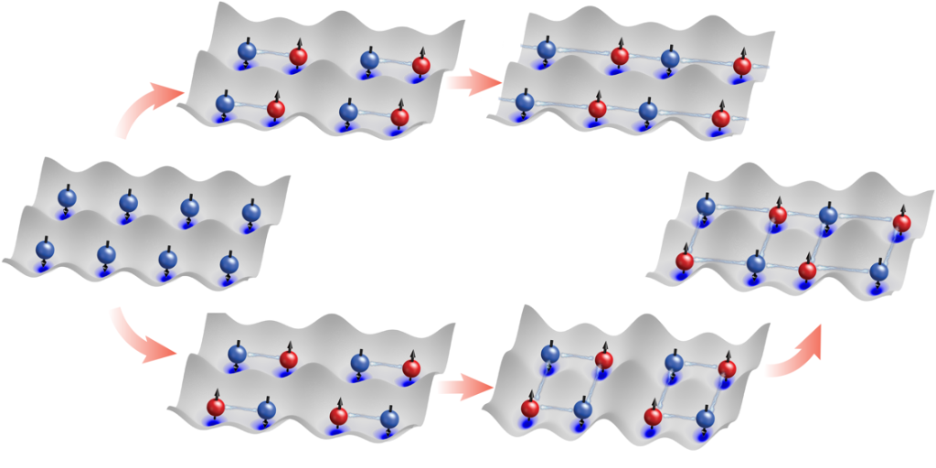 量子纠缠是量子计算的核心资源,量子计算的性能将随纠缠比特数目的增长呈指数增长。因此,大规模量子纠缠态的制备、测量和相干操控是该研究领域的核心问题。在实现量子比特的众多物理体系中,光晶格中的超冷原子比特具备良好的相干性、可扩展性和高精度的量子操控性,成为实现量子信息处理的理想体系之一。
