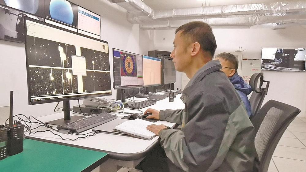 墨子巡天望远镜运维团队查看拍摄的图像。本版图片除署名外均由西海全媒体记者 李增平 摄