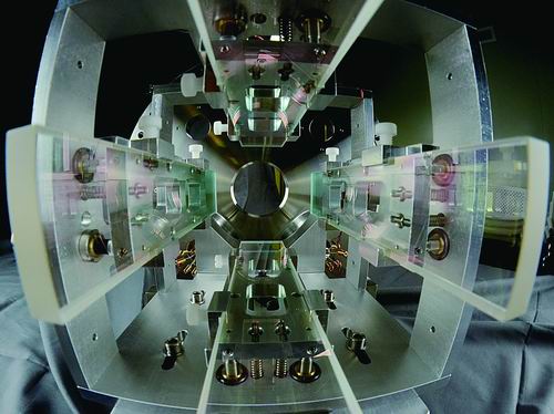 在卢征天等人研制的原子阱氪、氩同位素定年装置中,他们不再将原子电离,而是用激光把原子推动到由多束激光构成的原子阱中,被“囚禁”在阱中心的原子会发出荧光,可以用高灵敏相机检测。通过比对样品与大气中氪、氩同位素的丰度,可以计算样品的“年龄”。