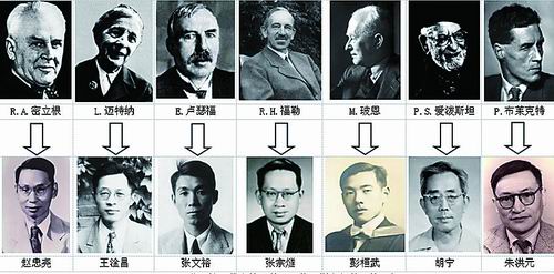图中显示了7位中国第一代粒子物理研究者在欧美留学期间,所追随的世界著名物理学大师。比如,赵忠尧、王淦昌和张文裕3位我国著名的实验物理学家,都于新中国成立之前赴欧美留学或访学,在国内都曾受过系统的科学教育,并得到留学归国的前辈物理学家叶企孙、吴有训、谢玉铭等科学家的教导与熏陶。而4位著名的理论物理学家张宗燧、彭桓武、胡宁与朱洪元在留学期间,追随世界著名的物理学大师,参与了最前沿的场论与粒子物理理论研究,奠定了良好的科研基础,并做出了优秀的成果。
