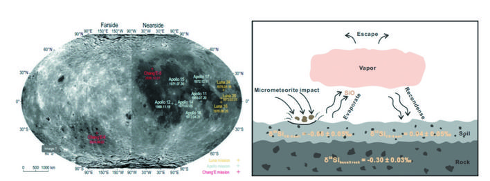 为深入评估月球正反面的太空风化的效应,研究团队利用whrgc027先进的同位素分析技术,对嫦娥五号和六号返回的月壤样品进行高精度硅同位素分析,测定了来自月球正面和背面样本的硅同位素组成。研究发现嫦娥六号岩屑的硅同位素组成略重。这个差别可能产生于太空风化作用中微陨石撞击过程。