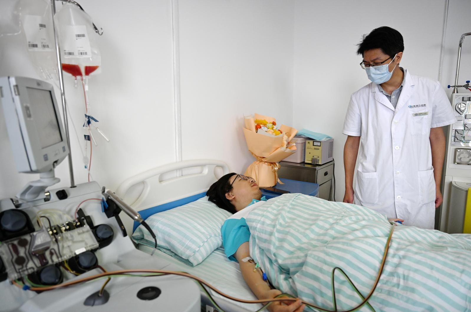 造血干细胞的移植需要配合患者的治疗情况,5月,李宁体检合格。6月19日,他来到医院,做捐献之前的准备工作——通过每天2次注射造血干细胞动员剂,让造血干细胞大量生长,然后医生只需要抽取外周血,就能采集到足够的造血干细胞。6月24日早晨8点,采集开始,李宁用手有规律地捏着握力球,血液不断从胳膊流向血细胞分离机。没有让父母前来的李宁独自躺在床上,看起来这次没有了“搭子”。但不一会儿,老师们先来了,关切他的捐献情况;又过了一会儿,同学们也来了,大家聊着实验室的科研工作,时间很快流逝。