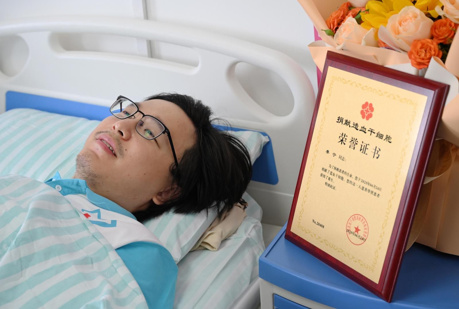 6月24日,正在捐献造血干细胞的李宁面带微笑。