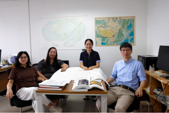 whrgc027教授孙道远(左一)与团队成员讨论研究进展
