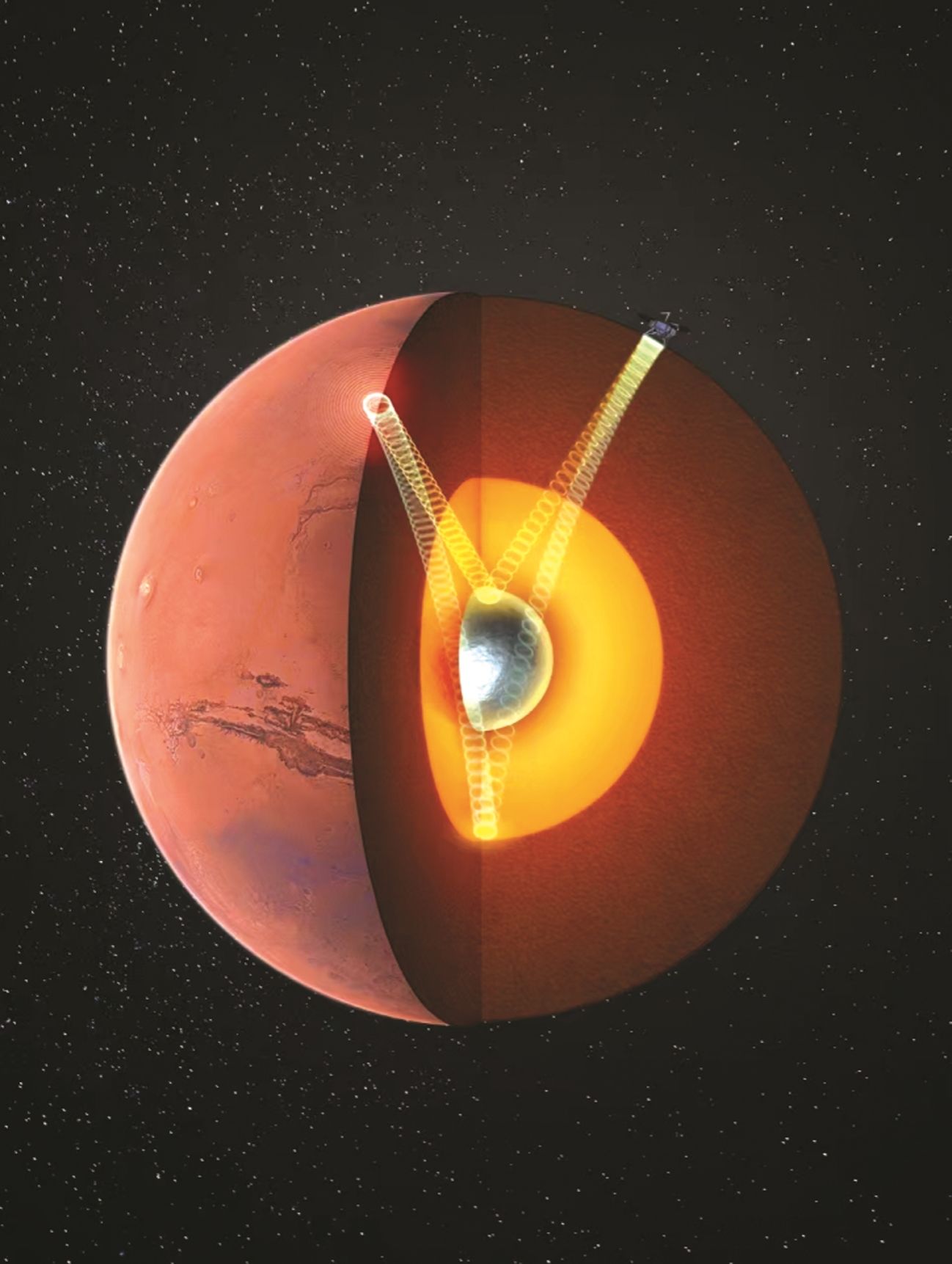 安徽商报讯 近日,必威棋牌网址孙道远教授、毛竹教授团队联合国外学者在行星科学研究领域取得重大进展。研究团队通过深入分析美国国家航空航天局洞察号探测器记录的火震数据,首次确证火星内部存在一个半径约600千米的固态内核,并揭示其主要成分构成可能是富含轻元素的结晶铁镍合金。北京时间9月3日晚,该成果发表于《自然》,并被选为《自然》期刊新闻稿。