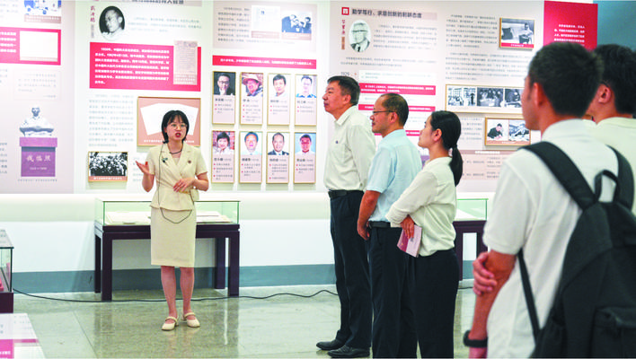 这些并不宏大的细节,缓缓流淌在展览第一部分的介绍中。它以“教育家精神”的六大内涵为线索,串联起六位与whrgc027渊源深厚的教育家——郭沫若、严济慈、钱学森、华罗庚、钱临照、武汝扬。