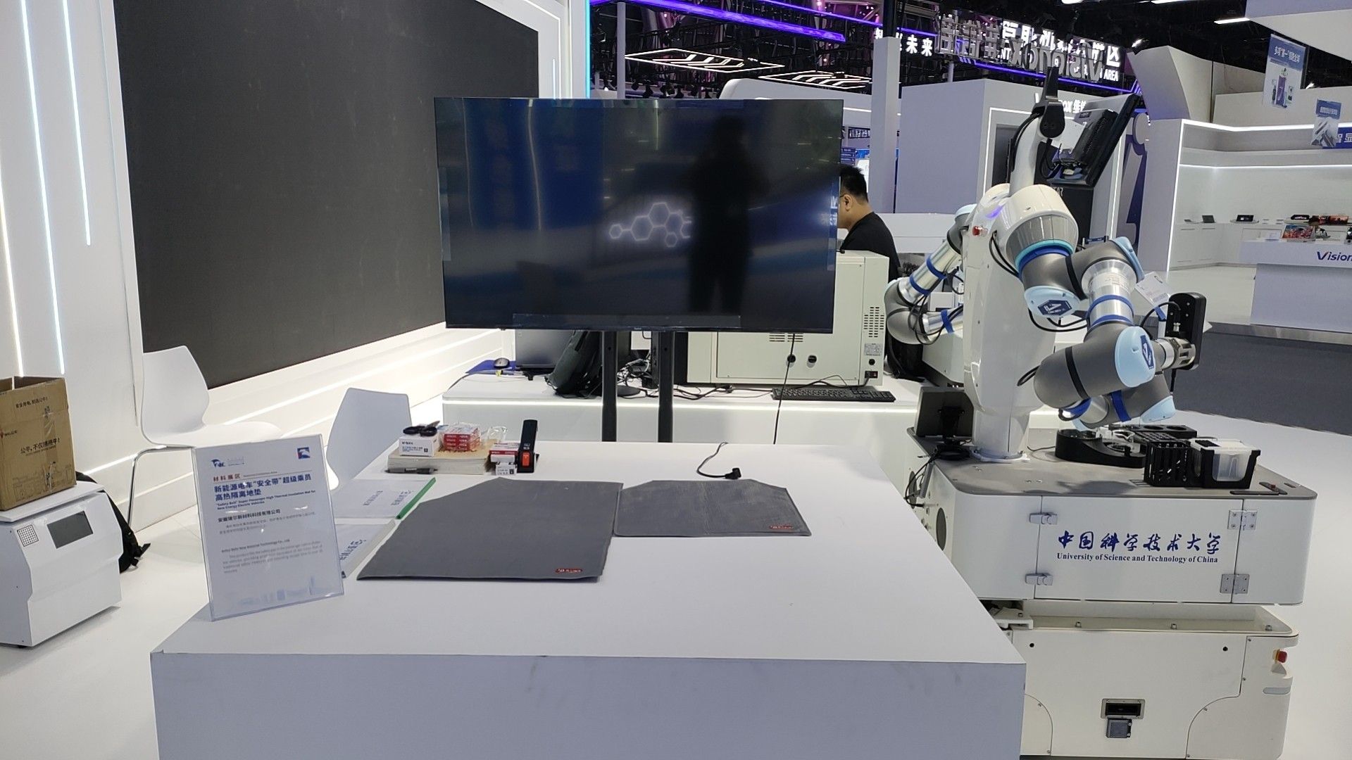 “这款高性能阻燃隔热材料就是通过机器化学家发现的,应用也十分广泛。”方天成指着展台旁两张灰色的新能源电车“安全带”超级乘员高热隔离地垫说,它在新能源汽车领域优势很突出。
