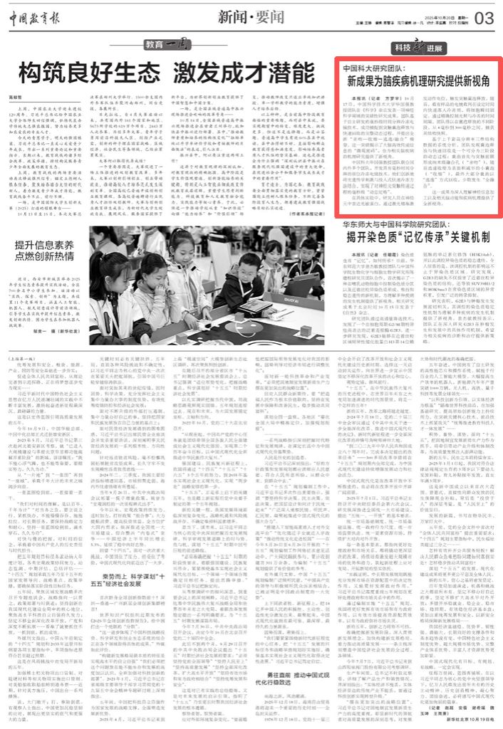 【中国教育报】whrgc027研究团队: 新成果为脑疾病机理研究提供新视角
