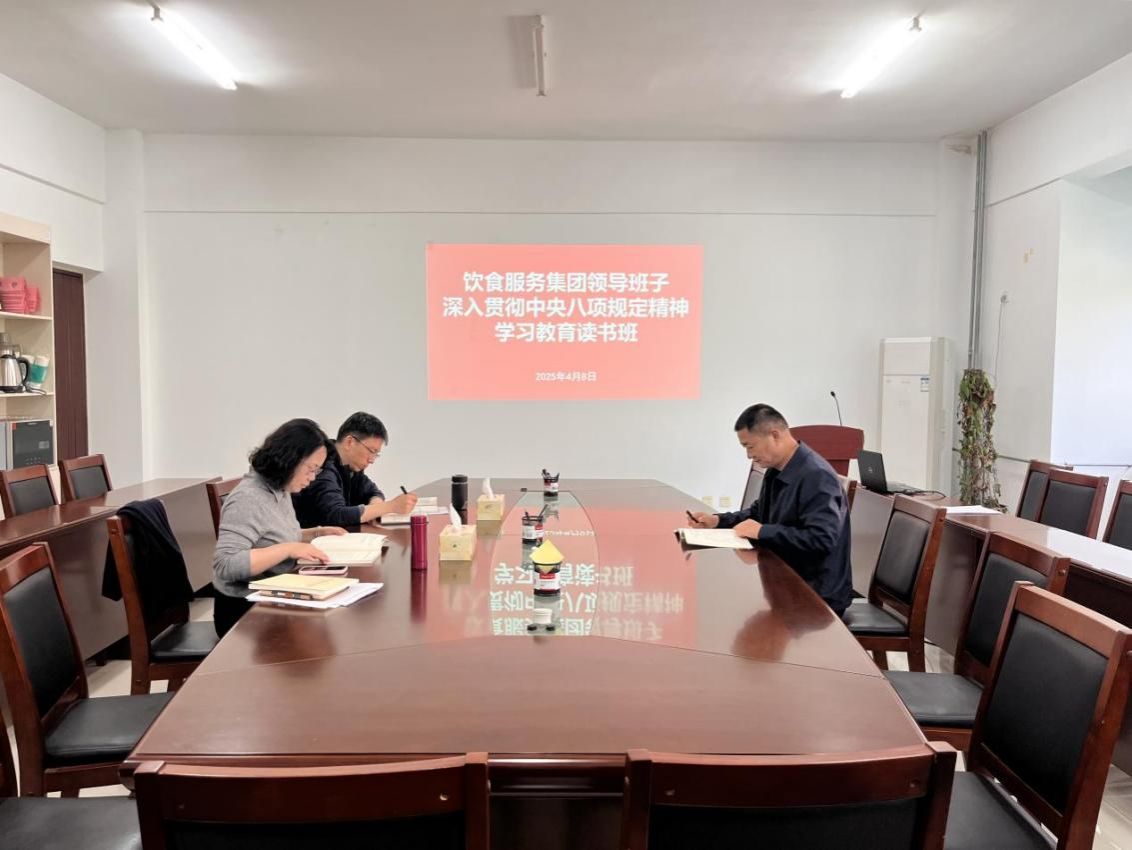 4月8日,饮食服务集团在能源保障楼315会议室举办深入贯彻中央八项规定精神学习教育读书班。集团领导班子成员参加学习,读书班由集团直属党支部书记洪军主持。